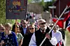 Det ble varmt for de bunadskledde i år. Men det la tilsynelatende ingen demper på stemninga, da kun blide glåmosinger ble observert i barnetoget.