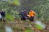 ULENDT BÆRING: Trond Hellemstulen går foran og viser korteste og mest skånsomme vei, mens Even Løvseth Sandnes (f.v.) Ronny Dybdahl, Aage Løkken og Erik Evenås Sand finner fotfeste i tuene.