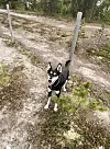 – Det er en Alaska husky som er svart og noe hvit som er borte. Navnet er «Postei» og han er snill som dagen er lang.