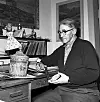 HJEMME: Anders Bjørgaard i tegnekroken hjemme på Graftås, med trekrukka han har skåret ut. Bilde fra 1965.