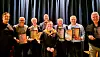 NM I RAKFISK: Fra venstre Guri Heggem (juryleder), Ola Hov (3. plass Villfisk), Inge Skavhaug og sønn, Arnstein Stensaas, Rune Isachsen og Åsmud Kleven (mottok prisen på vegne av Lågaros Rakørret) Foran: Jorid Skott Svendsen, daglig leder Vauldalen Fjellhotell.