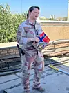 AVSKJEDSTALE: Her sier Annie «takk for laget» for siste gang i Irak.Privat