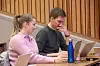 FØRSTEREIS: Johanne Holden (FH) møtte i sitt første kommunestyremøte denne uka. Da var det greit å sitte ved siden av den erfarne partikollegaen Arve Hitterdal.