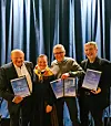 VINNERNE: Fra venstre: Arnstein Stensaas, vertinna Jorid Skott Svendsen, Olav Hov fra Hardangervidda rakfisk, og til høyre Lars Eggen fra Jotunheim fisk.