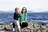 FÅR UTFOLDE SEG: Erle Fæmundshytten med den yngste sønnen Jonathan. Han og storebror Jacob liker å kaste små og store steiner ut i vannet i Aursunden.