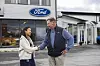 OVERTAR: Finansdirektør Thu Sandbakken fra Ren Røros lander avtalen med Per Martin Haugen i Røros Auto Eiendom.