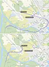 Bildene under tar for seg frigjøringspotensialet ved en ombygging av jernbanen utenom sentrum, blå stripe. Ca. 3 kilometer jernbane kan avkortes. Tiltaket forutsetter at flyplassen kan tilpasses fra 1720 meter ned til 1440 meter rullebane. Bildene er laget på nettsida for kommunekart. Øvre bildet viser dagens jernbanespor. Nedre bildet viser ny potensiell trase.