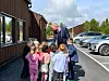 MØTTE UTE: Barna møtte ordføreren ute på parkeringsplassen før bokopplesninga.