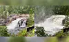 MYE VANN: Bildet til venstre av Hyttfossen ved Eidet er fra mandag morgen. Bildet til høyre er tatt nøyaktig 24 timer senere. Vannstanden i Gaula ble høy, men elva ble aldri flomstor.