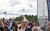 GODTERIKANONER: Det tok overraskende lang tid å skyte ut 35 kilo godteri fra scena under dagens Bergstadcup.