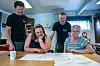 STUDERER TEGNINGER: Kristine Bjerke Moen (foran t.v) og Inger Thorsvoll studerer tegninger av hvordan en firemannsbolig i Brekken kan bli. I bakgrunnen Ivar Langeng (t.v) og Ivar Sødal fra Bergstaden Bygg.