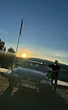 GLYKOLIKER: «Dama», en Volvo XC 70, og hennes mann og eier, innleggsforfatteren Lars Erik Moxness. De to er fortsatt sammen og har flere solnedganger i vente.