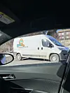 SJÅLET BIL: Denne bilen ble stjålet i Trondheim natt til onsdag. Neste morgen ble den observert på Røros. Da hadde biltyvene forsøkt å rive av fimalogoen. Resultatet er at det står «Studbua» i stedet for Studbud, som flyttebyrået heter.