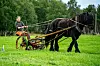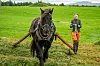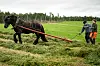 SAMARBEIDER: Ettersom slåttonn er nytt for hesten, samarbeider Jan Morten Sandnes og Birgit Sakrisvoll Døhl bak sleperiva.Foto: Nils Kåre Nesvold