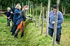 Jonson og Zalut trives best ved hestehengeren der de har tilgang til høy, men tar noe motvillig sine runder med sleperiva for å rydde unna graset slik at hesja får plass. Folk bærer staurer og hesjetråden kommer på plass.