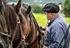 KLARGJØR: Jan Morten Sandnes klargjør utstyret til hestene før arbeidet starter.Foto: Nils Kåre Nesvold