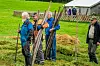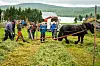 Utenfor såmmårfjøset kommer slåttefolket sigende. Ildsjelene Jan Morten Sandnes, Jon Ryttervoll og Birgit Sakrisvoll Døhl gjør klar de to hestene. Det er den 24 år gamle dølahesten Jonson og den fem år gamle nordsvenske brukshesten Zalut.