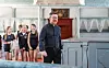 VILLEDER: Her leder presten 8.klassingene rett i klørne på «svensken» Jo Bjørner Haugom. F.v. Ella Marie Nurmi Danielsen, Sara Sødal, Signe Hovind og Harald Hauge.