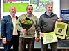 ÅRETS ØKOBØNDER: Solveig og Kjell Anders Sandkjernan er årets økobønder i Trøndelag. Fra venstre: Statsforvalter Frank Jenssen; Brede Sandkjernan, som skal ta over gården etter foreldrene; og prisvinner Kjell Anders Sandkjernan.