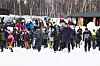FØRSTEMANN: Sekunder etter at isfiskerne er sluppet ut fra gjerdet ved båthuset ved Brekken kirke, er de seriøse fiskerne på hugget for å finne riktig fiskeplass.