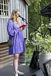 DELER UT PRIS: Hvert år deler Bygdaliv ut en hederspris til en i bygda som har gjort en innsats for bygda. Komitéens leder Anita Fodor Talnes leste opp begrunnelsen.