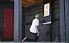 HEDRER PAVEN: Marcus Becker henger opp et bilde han har malt av paven. – Jeg vil hedre ham for at han var en barmhjertig og medfølende pave som var opptatt av de fattige, dem har vi mange nok av her på Røros også, sier han.