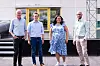 PÅ BESØK: Politikerne fikk omvisning på taket som i løpet av sommeren og høsten skal dekkes av solcellepaneler, blant annet for å få innsikt i hvor skoen trykker når det gjelder utbygging av solkraft. Fra venstre: Lars Haltbrekken (stortingsrepresentant, SV), Christian Elgaaen (varaordfører og ordførerkandidat, SV), Rakel T. Skårslette Trondal (fylkesordførerkandidat, SV) og Ottar Tollan (daglig leder ved Flokk).