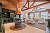 ILDSTED: Hytta har åpent ildsted med avtrekk i kobberbeslag plassert i stua.Eiendomsmegler 1 Melhus/Røros