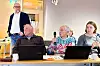 DISKUSJON: Even Erlien og Faste Strømmevold, i midten av bildet, hadde flere innvendinger mot de stramme reglene for kjøp av aksjer i Ren Røros. A-aksjonærforeningen kom med endringsforslag til vedtektene i et forsøk på å senke kravene til eierskap i Ren Røros.
