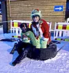 Ordfører Sadmira Buljubasic – i Grinchen-kostyme – fikk æren av å være første utøver utfor Kjerkgata med kavaleren Birk Brynhildsvoll.