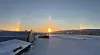 TRE SOLER: Det kan se ut som om tre soler forsøker å mildne 32 minusgrader over Gjettjønna onsdag formiddag.