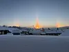 Lysbrytningen i iskrystallene i lufta laget denne effekten, som ble en tilnærmet «isbue». Isbaderne som bruker tjønna kan kanskje varme seg litt i vannet før de kommer opp og løper tilbake tilbake til varmen i den nye badstua inne på land.Geir Tønset