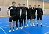 GLEDER SEG: Denne knippet av junior- og seniorspillere fra Røros gleder seg til en fartsfylt fotballdag i Verket Røros 27. desember. Fra venstre Marius Larsen, Normann Aspaas, Konrad Aspaas, Pavlo Loza, Albert Uglem Trondsen og Espen Feragen.RørosBankens julecup