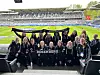 LERKENDAL: Røros-jentene sammen med landslagsspillerne Kristine Leine og Cesilie Andreassen på Lerkendal.