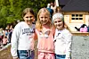 STAS: Gapahuken, benkene, uteområdet og bålmulighetene var helt klart stas for barna. Mest stas var det imidlertid med skogen. Etter høytidelig åpning, boller og is bar det rett ut dit for å finne opp nye leker. Karianne Magnussen, Karoline Engesvoll og Kjerstine Holden, fra venstre mot høyre, rakk så vidt å vise oss rundt i gapahuken før de forsvant.