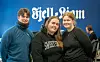 TRIO PÅ LOFFEN: Trym Gamme Horvei (f.v.), Anna Johansen og Karen Hestmo tok turen innom Fjell-Ljom-redaksjonen da de var på Røros-besøk. De lyktes å reise tur-retur Skaun-Røros uten å bruke ei krone.