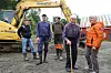 FOSSENDE VANN: Alt skjedde fort og dramatisk da vannet fosset ned mot huset til Jens og Bjørg Nyrønning (foran). Bak f.v. Elling Langeng, Jon Kristoffer Nyrønning og Eivind Lillevold.