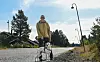 HULTER TIL BULTER: Terje Tinlund går daglig tur med hunden Bella langs Hyttskrivarveien. Han har sett gatelysene i Gjøsvika bli skjevere og skjevere det siste året.