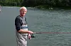 STRENGERE KRAV: Lars Haltbrekken vil ha strengere krav til oppdrettsnæringa etter at laksefisket i 33 elver og innsjøer i Norge ble stengt på grunn av liten laksebestand. Halbrekken mener lakselus og rømming fra oppdrettsanlegg har mye av skylda, sammen med klimaendringer. Bildet er fra et tidligere besøk i lakseelva i Beiarn kommune i Nordland. – Jeg fikk ingen fisk, understreker Haltbrekken.