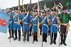 PÅ PLASS: Det Holtålske skiløperkompani er naturligvis på plass under VM på ski. Fredag i forrige uke viste de seg frem på VM-arenaen i Granåsen.