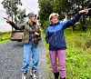 SAMLET: Hele nabolaget er samlet for å hjelpe til med å rydde opp i skadene etter flommen. Her er det Liv Astrid Gjølmesli, til venstre, som prøver å finne alternative ruter rundt raset.Foto: Morten Haugseggen