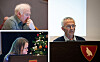 FANT PASSENDE: Ole Jørgen Kjellmark (f.v) i Røros Rotary, Sergii og Ivan venter på at de andre skal komme fram fra skogen i Erlia med sine juletrær.