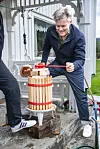 EPLESIDER: Per Morten Ekerhovd skrur til pressa, og mugga fylles opp med kortreist eplesider.