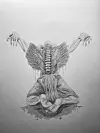 «BLODENGEL»: Tuva Stenmo sin illustrasjon av det morbide ritualet fra vikingtida har blitt plukket ut til landsfestivalen i årets UKM. Inspirasjonen kommer fra litteraturen og litt ryggsmerter.