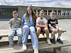 VIL GJENREISE SYKKELPARKEN: Håkon Øyseth, Mali Døhl Nesvold, Lucie Sivertsgård og Aidan Vårhus Banes sto bak idéen om å gjenoppbygge sykkelparken på Langlandet. Idéen ble vurdert så god at mellomtrinnet ved Hov skole blir tildelt penger fra Ungt Entreprenørskap til å realisere den.