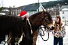 RIDNING: Allerede før folk rakk å komme inn døra ble de fristet av gode tilbud. Thea Marie Hvitsand, fra Solbakken Fjellgård, stilte med kaldblodstraverne Prinsen og Hege slik at barn i alle aldre kunne få prøve seg på hesteryggen.Morten Haugseggen