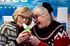 ANSIKTSMALING: Du kan så vidt skimte ansiktsmalinga i Berit Grønlis ansikt. Om det var på grunn av den eller at hun nettopp hadde solgt noe for Holtålen Husflidslag at hun var i så godt humør, vites ikke.Morten Haugseggen