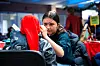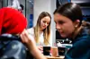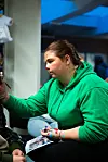FOKUSERT: Ida Brennås er fokusert når hun maler ansiktsmaling på en av mange unge kunder denne dagen. Ansiktsmalinga var like populær i år som i fjor – minst.Morten Haugseggen