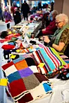 STRIKKA: Lilian Andersen selger kun varer hun har strikka selv. Samtidig som hun solgte varer, satt hun og strikka nye. – En kan ikke sitte med hendene i fanget. Jeg må sitte og strikke, forklarte hun.Morten Haugseggen