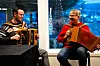 TILFLUKT: Anders Grøtådal og Roar Baustad Drøivold hadde søkt tilflukt inne på det som tidligere var blomsterforretninga i Ålentorget, men som i dag fungerte som kafé nummer to. Der satt de og trakterte toraderen på meget elegant vis.Morten Haugseggen